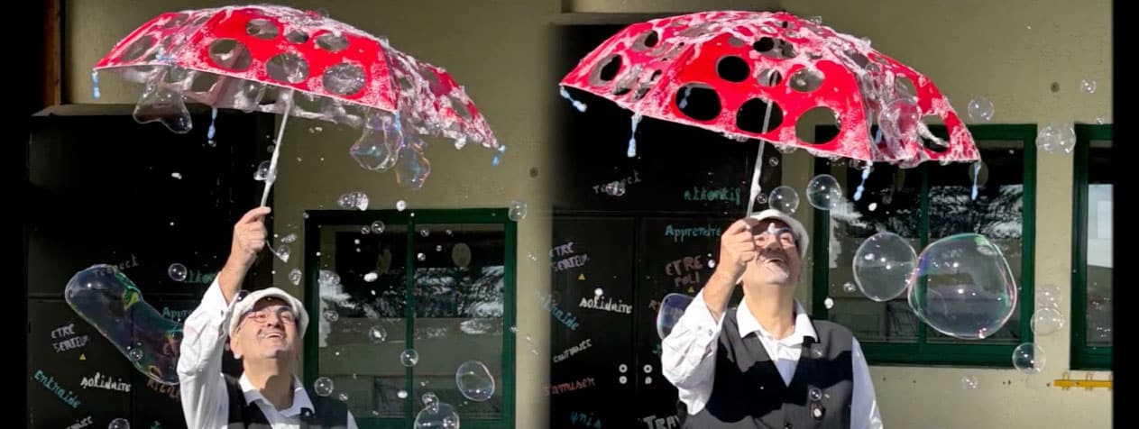 Dans la première partie de 15mn, je ferai rêver les enfants et adultes avec une démonstration de bulles de savon géantes.